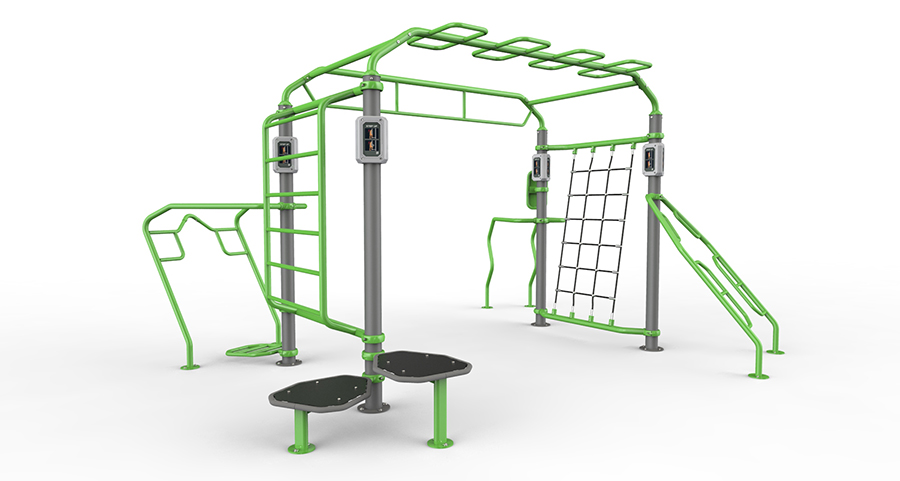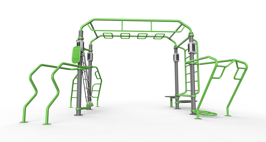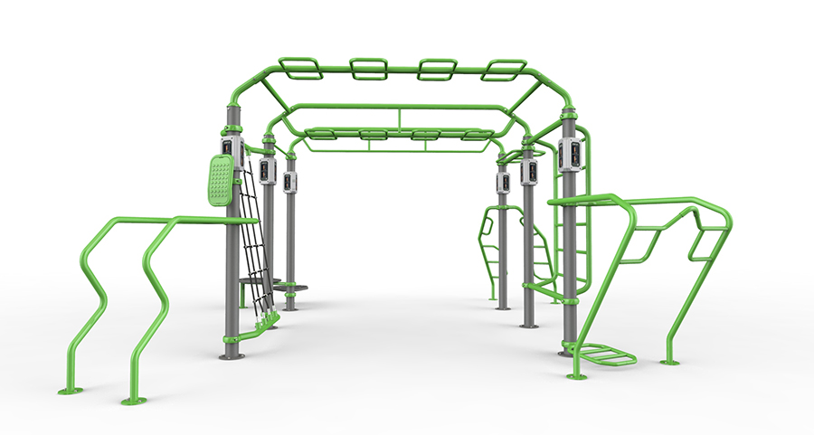 La Impulse Zona X è composta da 4 stazioni: IZ7002 Boxing Station, IZ7003 Rebounder Station, IZ7004 Power Rack Station, IZ7005 Dual adjustable pulley station e un requisito speciale che viene posizionato sulla cima della gabbia, e che ha dei ganci per la fune d’arrampicamente, meta per il wall ball, e una roccia artificiale per l’arrampicamento.