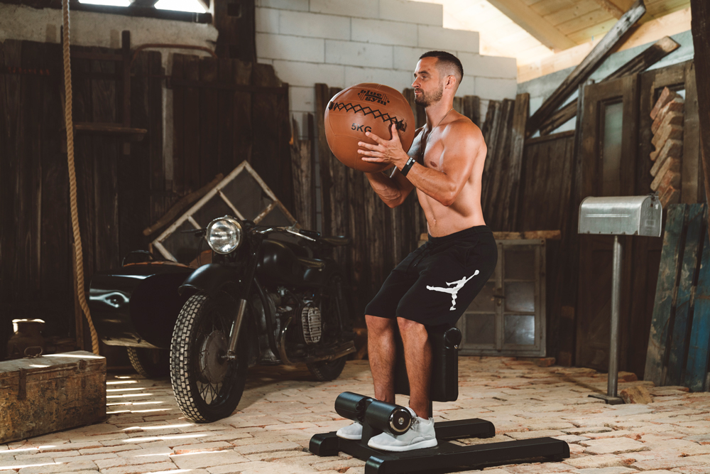 Questo semplice, ma molto efficace, attrezzo per lo squat vi permette di svolgere l’esercizio che può essere definito come un mix tra l’estensione contraria delle gambe e lo hack squat. Attiva in un modo eccellente tutte è quattro le “teste” del quadricipite, gluteo e rafforza sia le ginocchia che i fianchi allenando allo stesso tempo l’equilibrio e la stabilizzazione del vostro tronco (core).