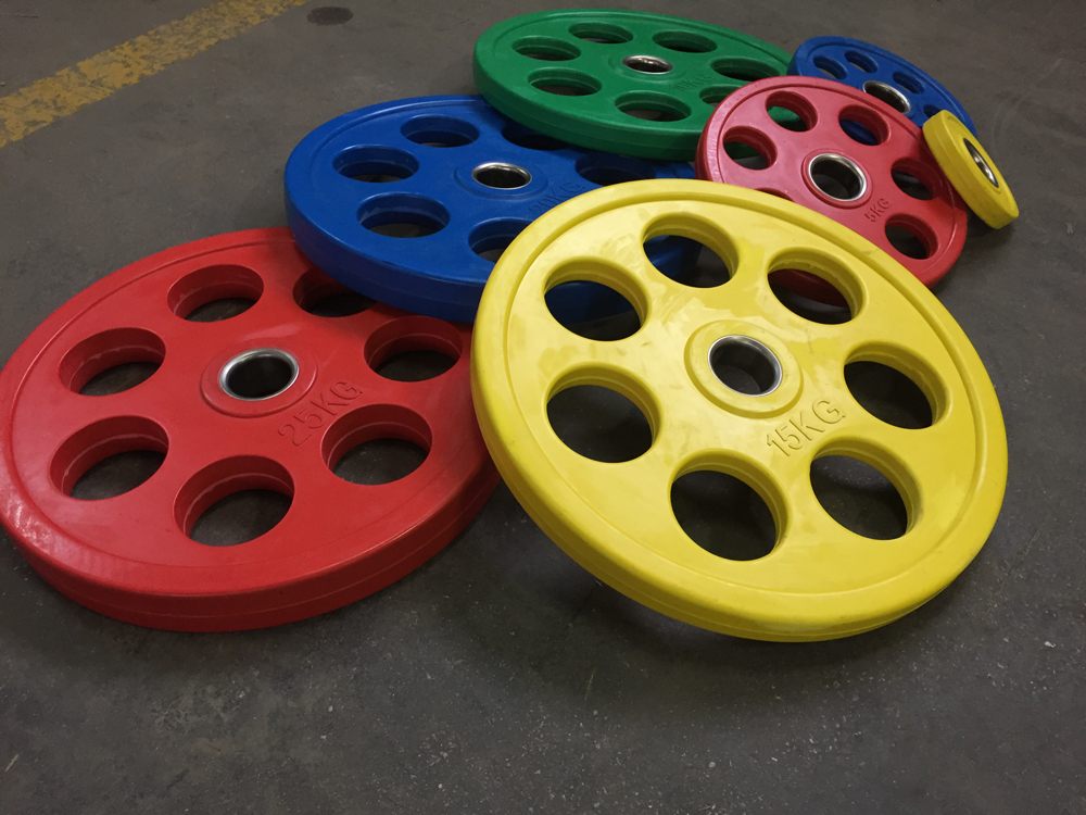 Set di Dischi Olimpici 7-Grip Gommati + Bilanciere Team Line 220 Cm- 105 KG