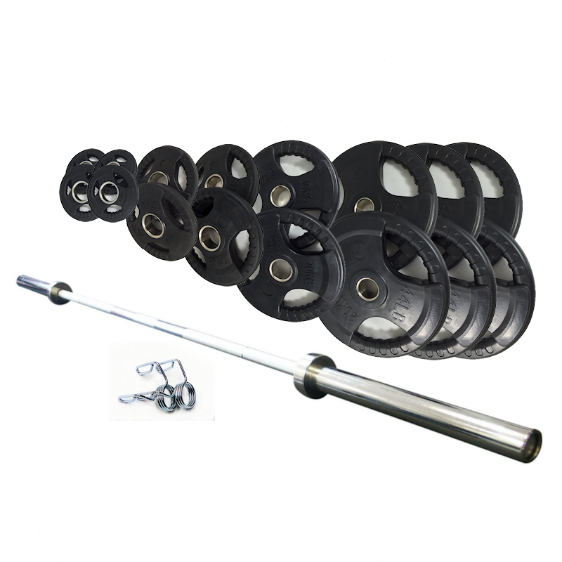 Set di Dischi Olimpici Gommati Trigrip + Bilanciere Team Line 125KG